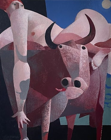 Woman with Bull, 80 x 100 cm.